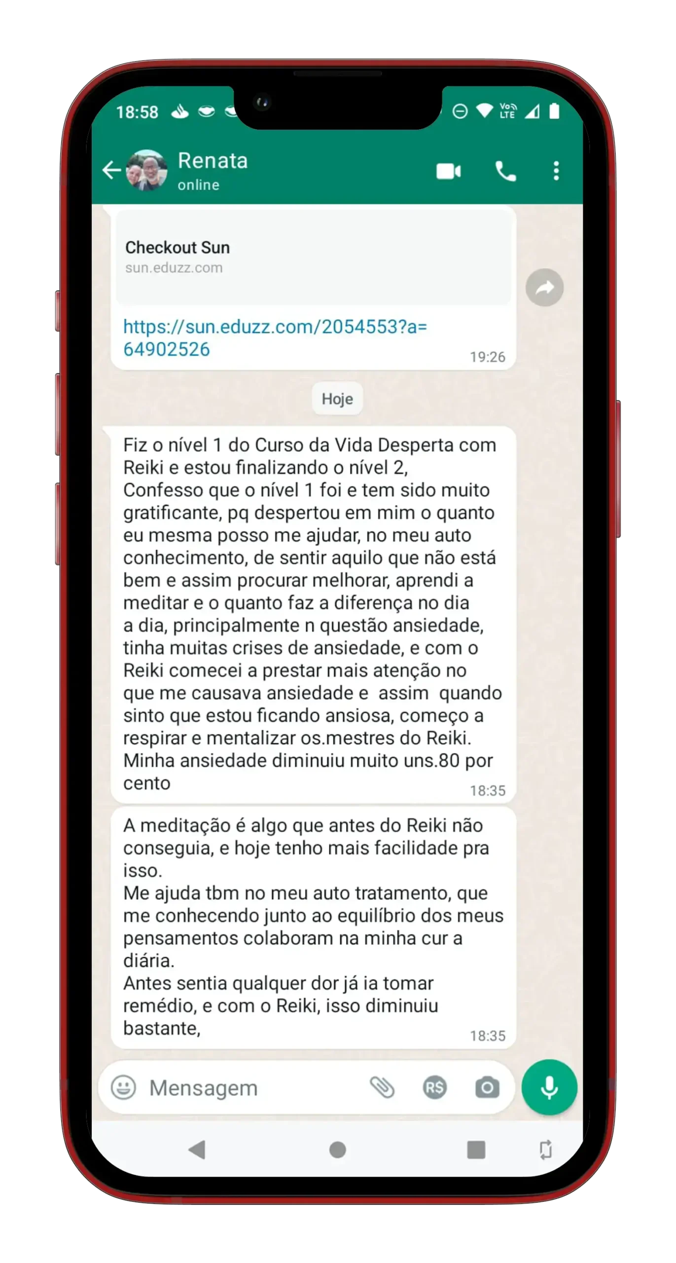 Mesmo que você ainda não se sinta pronto(a) para adquirir o nosso método completo, eu quero te entregar algo de valor desde já. Preparei um bônus antecipado especial para você: a Cartilha para Uma Vida Saudável com Reiki. Esse material foi pensado para apresentar, de forma simples e prática, como os princípios do Reiki podem ser aplicados no dia a dia para cultivar mais equilíbrio, bem-estar e harmonia na sua vida. Faço isso porque acredito profundamente no poder transformador do Reiki. Acredito que essa prática pode tocar vidas, trazer mais consciência, serenidade e despertar algo muito especial dentro de cada pessoa. Meu desejo é simples: que você tenha a oportunidade de dar os primeiros passos em direção a uma vida mais saudável, equilibrada e alinhada com os princípios do Reiki. Receba esse bônus com carinho. Ele pode ser o primeiro passo de uma jornada muito especial.